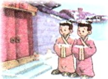 过了很久,程老师醒来,发现两个学生站在大雪纷飞的门外,就急忙把他们拉进屋里,心疼地说:“外边雪这么大,你们为什么不进屋呢?”