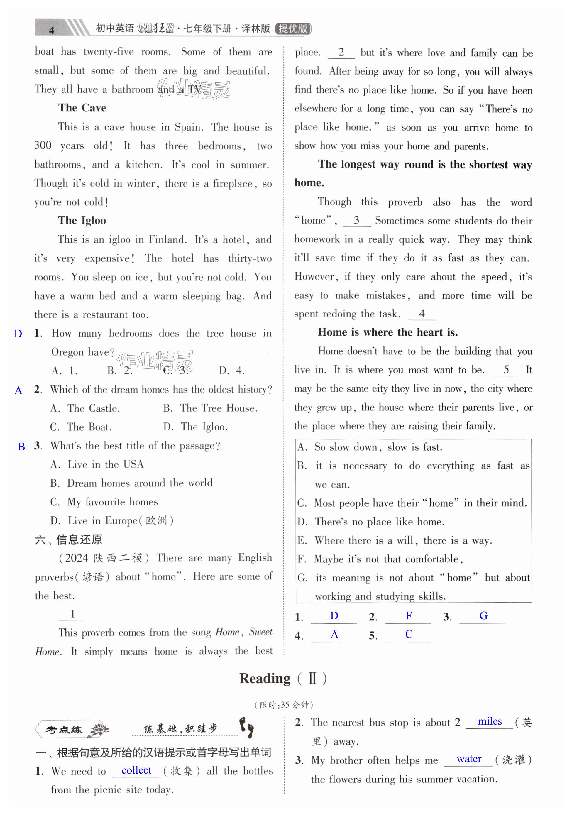 注:目前有些书本章节名称可能整理的还不是很完善,但都是按照顺序排列的,请同学们按照顺序仔细查找。练习册 2025年小题狂做七年级英语下册译林版提优版 答案主要是用来给同学们做完题方便对答案用的,请勿直接抄袭。