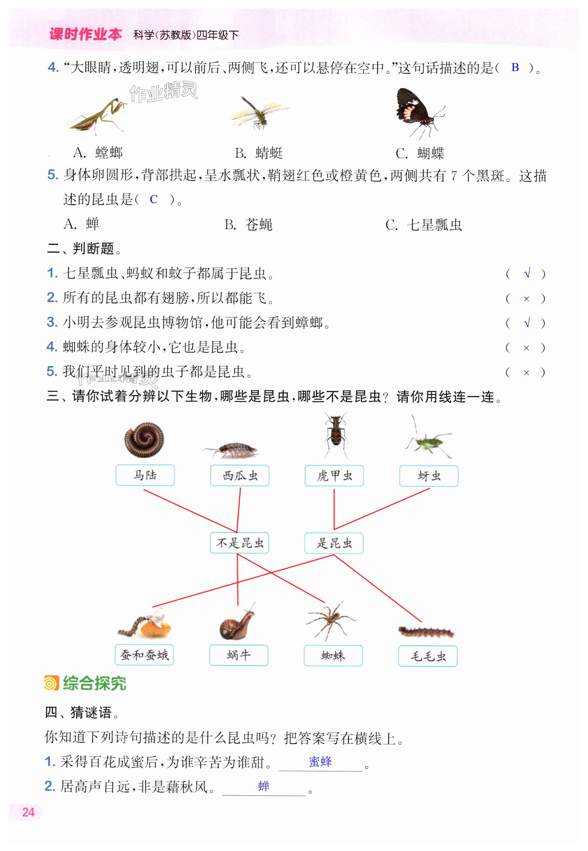 注:目前有些书本章节名称可能整理的还不是很完善,但都是按照顺序排列的,请同学们按照顺序仔细查找。练习册 2025年通城学典课时作业本四年级科学下册苏教版 答案主要是用来给同学们做完题方便对答案用的,请勿直接抄袭。