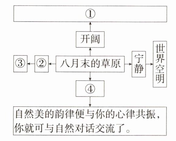 (2)文章开头写花自然地引出了“我”在八月末上草原一事。第⑤段再次写到花,意在用花来做衬托,突出八月末草原的纯真美,并引出作者的哲思:正因为错过了草原千姿百态的花,作者才看到了草原不遮不掩、更纯更深、展示着灵性的真美,实现了心律与自然美的韵律共振和与自然的对话交流。