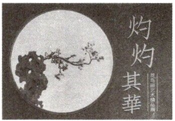 (示例)这幅宣传图片由两部分构成,左边是一枝梅花,它于山石缝中傲然绽放,展现出顽强的生命力;右边是文字“灼灼其华——花鸟画艺术精品展”,文字排列错落有致,繁简结合,主题突出。整幅图片结构精巧,风格古朴典雅,含义深刻,体现了花鸟画的人文特色。