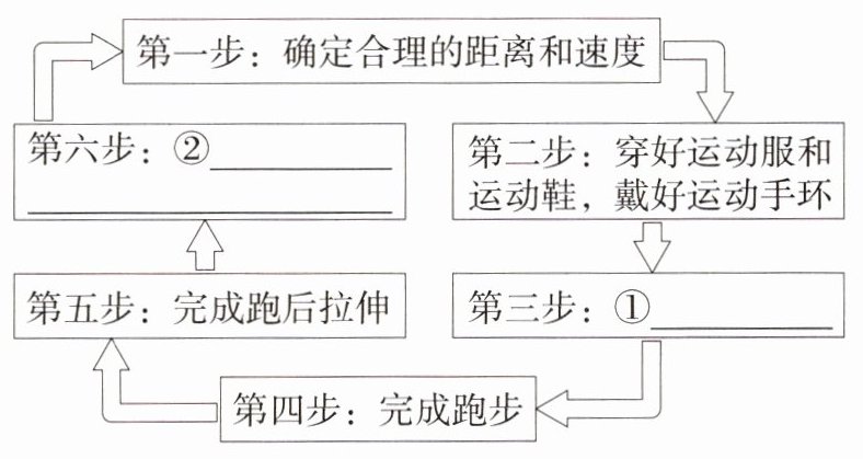 (3) 跑步锻炼需要循序渐进,并根据自身情况合理调整。依据材料,某同学设计了一份暑假夜跑锻炼流程图,请你帮他完善。