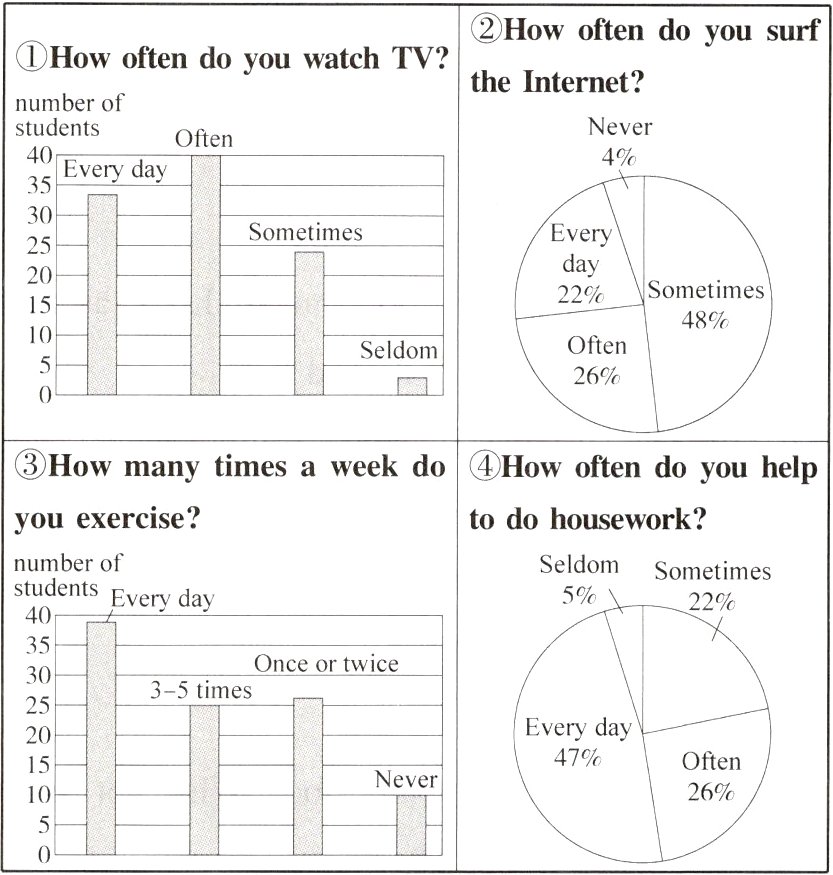 7.According to the second chart (图表), ____ of the students surf the Internet every day.