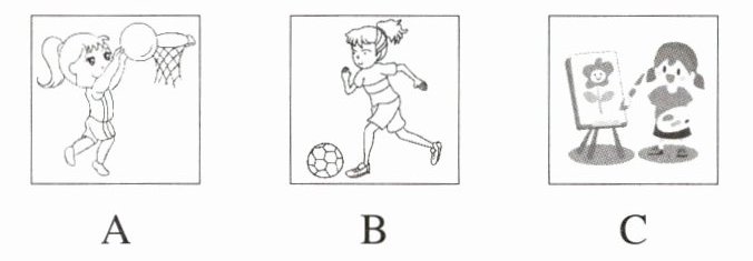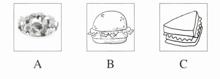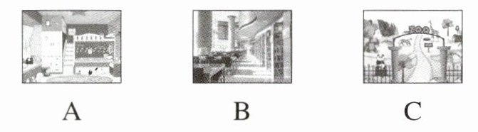 本题共有五个小题,每小题你将听到一组对话。请从每小题所给的A、B、C三幅图片中,选出与你所听到的信息相关联的一项。