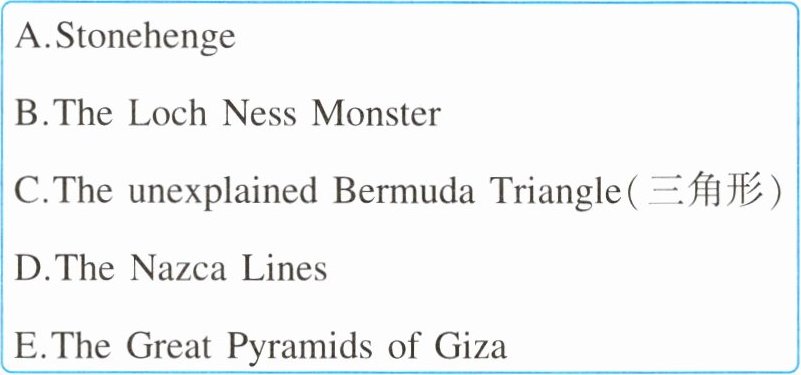 15. E 根据下文的“这些埃及的古建筑迷惑了科学家几百年。没有使用现代技术的情况下它们怎样被建成的?”可知,本段主要介绍了神秘的古埃及金字塔,选项 E“吉萨大金字塔”适合作为小标题。
