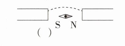13.[2023江苏无锡中考,25(2),★☆☆]磁体旁的小磁针静止时所指的方向如图所示,请在括号中标出磁体的磁极,并标出图中磁感线的方向。