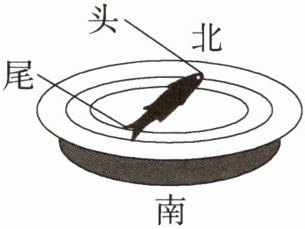 11.(2024广东佛山顺德期末,4,★☆☆)据《武经总要》记载,古人将具有磁性的空心铁鱼放入水中漂浮,制成指南鱼,如图是指南鱼静止时的指向,下列说法错误的是 ( )