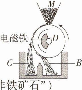 3. 如图所示是电磁选矿机的示意图,其中M为矿石,D为电磁铁,落入B中的是____,落入C中的是____。(均选填“铁矿石”或“非铁矿石”)