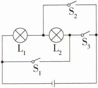 解析:图中所示的电路,如果闭合开关 S₁、S₂、断开 S₃,灯 L₁、L₂ 之间是并联的;如果闭合两个开关 S₁、S₃,电流不经过用电器,从电源正极直接回到电源负极,发生短路现象。