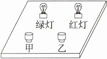 11.新考向·创新实验如图是一个简易“表决器”,“赞成”时,绿灯亮;“反对”时,红灯亮;“弃权”时,绿灯、红灯均不亮。甲、乙是两个与绿灯、红灯相对应的按钮开关,表决时,按下哪个按钮,对应的灯就亮;不按时,两灯均不亮,请画出符合要求的电路图。(P9303002)