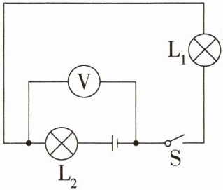 从电路图中可以看出,当 S 闭合,两个灯泡串联,电压表并联在 L₁两端,因此电压表测量 L₁两端的电压。