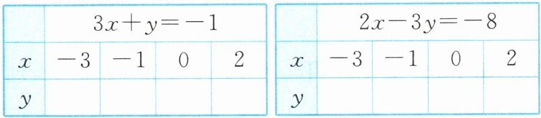 8. [母题 教材P3一起探究] 已知方程组$\begin{cases}3x + y = -1\\2x - 3y = -8\end{cases}$