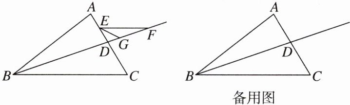 17. 新视角 探究题 如图,在△ABC中,BD平分∠ABC交AC于点D,点E是线段AC上的动点(不与点D重合),过点E作EF//BC交射线BD于点F,∠CEF的平分线所在的直线与射线BD交于点G.