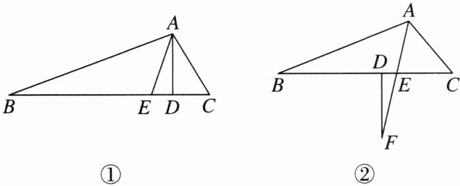 15. (22分)(1)如图①,在△ABC中,AD,AE分别是△ABC的高和角平分线,若∠B = 20°,∠C = 60°,求∠DAE的度数.