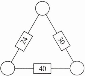 12. 如图是一个有三条边的算法图,每个“$\square$”里有一个数,这个数等于它所在边的两个“$\bigcirc$”里的数之和,请你通过计算确定三个“$\bigcirc$”里的数之和,并且确定三个“$\bigcirc$”里应填入的数.
