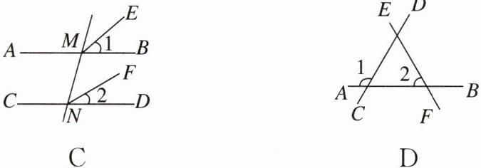 1. 下列图形中,∠1和∠2不是同位角的是( )