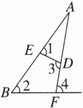 C 【点拨】A、∠1与∠2是同位角,原说法正确;B、∠3与∠4是内错角,原说法正确;C、∠1与∠3是内错角,原说法错误;D、与∠A是同旁内角的角共有4个,分别是∠1,∠2,∠ADE,∠AFB,原说法正确. 故选C.