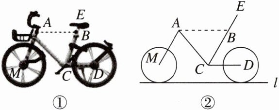 10. [情境题 实物抽象] 某市为了方便市民绿色出行,推出了共享单车服务. 图①是某品牌共享单车放在水平地面的实物图,图②是其示意图,其中AB,CD都与地面l平行,∠BCD=60°,∠BAC=50°,当∠MAC为_______度时,AM//BE.