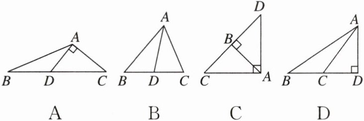 4. 下列图形中,能用线段AD的长表示点A到直线BC的距离的是 ( )