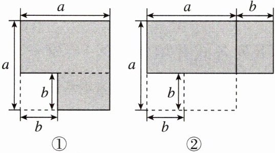 4. 如图①,从边长为$a$的大正方形中剪掉一个边长为$b$的小正方形,将阴影部分沿虚线剪开,拼成图②的长方形.