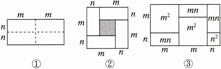 (2)观察图②,三个代数式$(m + n)^{2}$,$(m - n)^{2}$,$mn$之间的等量关系是 ____________.