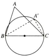 当点A'在圆上时,∠BA'C = 90°,因为∠A = 60°,所以点A一定在圆外.