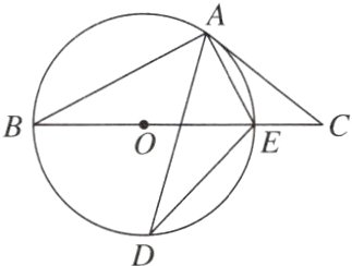 4. [2024眉山] 如图,BE是⊙O的直径,点A在⊙O上,点C在BE的延长线上,∠EAC = ∠ABC,AD平分∠BAE交⊙O于点D,连接DE.