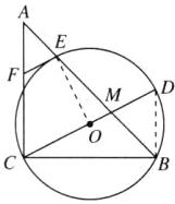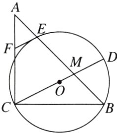 2. 如图,在△ABC中,∠ACB = 90°,AC = BC,⊙O经过B,C两点,与斜边AB交于点E,连接CO并延长交AB于点M,交⊙O于点D,过点E作EF//CD,交AC于点F.