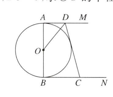 8. 如图,AB是⊙O的直径,AM,BN分别切⊙O于点A,B,CD分别交AM,BN于点D,C,DO平分∠ADC.