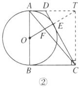 (2)如图②,若CD切⊙O于点E,连接OE,AC,OE与AC交于点F,若FC = 2AF,求BC/AD的值.