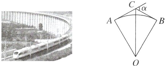 5. 情境题生活应用如图是高铁路线在转向处所设计的圆曲线(即圆弧),列车在转弯时经过的曲线起点为A,终点为B,过点A,B的两条切线相交于点C,列车在从A到B行驶的过程中转角α为60°,则∠AOB的度数为 ( )