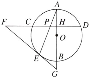 8. 如图,在⊙O中,AB是直径,弦CD⊥AB,垂足为H,E为$\overset{\frown}{BC}$上一点,F为弦DC延长线上一点,连接FE并延长交直径AB的延长线于点G,连接AE交CD于点P,FE = FP.