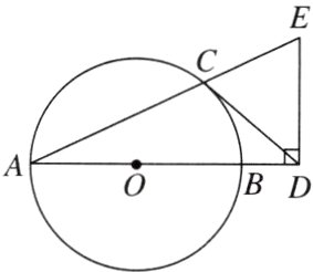 9. 如图,AB是⊙O的直径,CD与⊙O相切于点C,与AB的延长线交于点D,DE⊥AD且与AC的延长线交于点E.