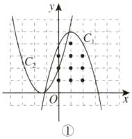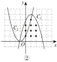 当抛物线C₁与C₂围成的封闭区域内在y轴上有整点(0,2),(0,3)时,如图②。