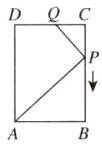 6. 如图,矩形ABCD中,AB = 9,AD = 12,点P从A出发以每秒3个单位长度的速度沿A→D→C→B→A运动一周,到点A停止. 当点P不与矩形ABCD的顶点重合时,过点P作直线PQ⊥AP,与矩形的边的另一交点为Q. 若点P的运动时间为t秒,当8<t<10时,CQ长度的范围是______.