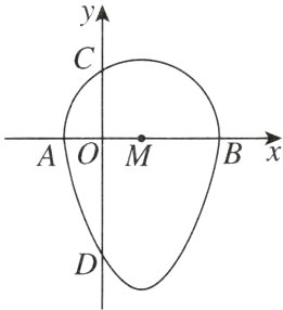 3. 如图,我们把一个半圆与抛物线的一部分围成的封闭图形称为“果圆”. 已知点$A$,$B$,$C$,$D$分别是“果圆”与坐标轴的交点,抛物线的表达式为$y=\frac{1}{2}x^{2}-2x - 6$,$AB$为半圆的直径,$M$为圆心,则这个“果圆”被$y$轴截得的“弦”$CD$的长为_______.