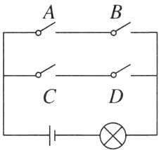 8. [新趋势 跨学科综合]如图,电路图上有4个开关A,B,C,D和1个小灯泡,同时闭合开关A,B或同时闭合开关C,D都可以使小灯泡发光.下列操作中,“小灯泡发光”这个事件是随机事件的是 ( )