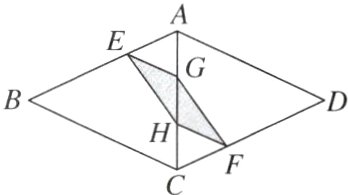8. 如图,小球在菱形ABCD中自由地滚动,点E,F分别在AB,CD上,且BE = 2AE,DF = 2CF,点G,H在AC上,且AG = GH = CH,则小球最终停在阴影区域中的概率是________.