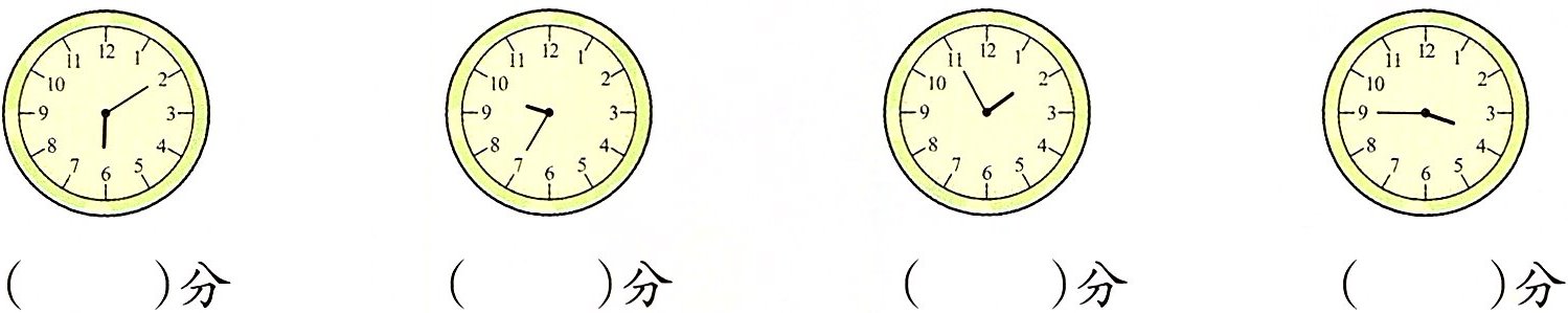 3. 写出分针从 12 旋转到下面各个位置所经过的时间。