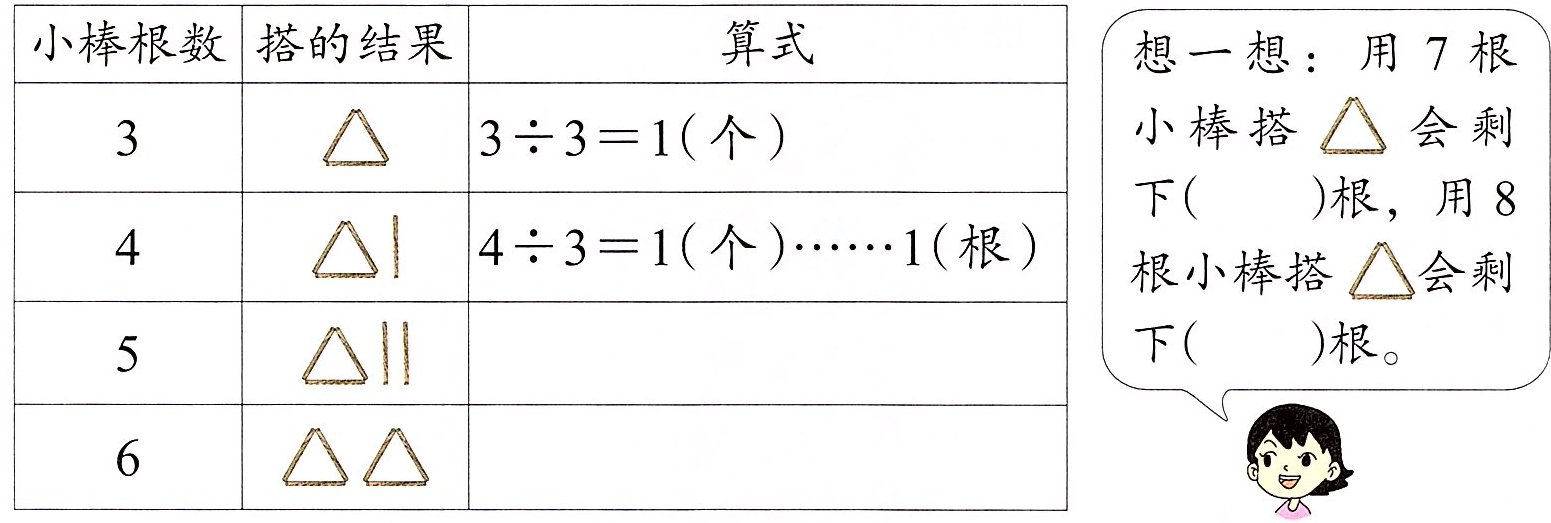 1. 用小棒搭 △。搭一搭,填一填。