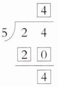 4. (新情境·传统文化)赛龙舟和吃粽子是端午节的两大习俗。妈妈把 52 个蜜枣粽平均分给 7 家邻居,每家邻居分到几个?还剩几个?