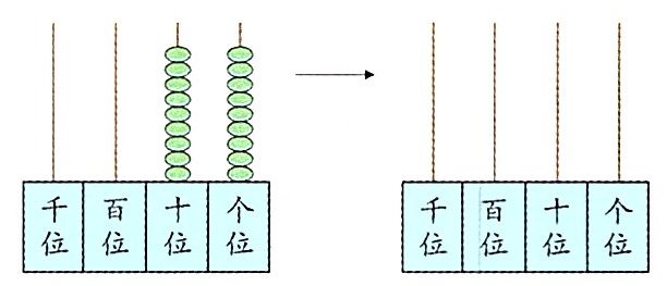 左边计数器上表示的是( )十( ),如果个位上再添上1颗珠子,表示的数是( )。