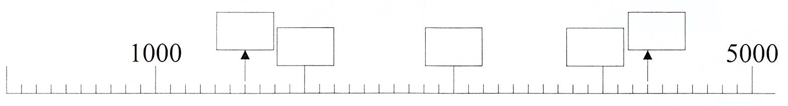 (1)图上的每一小格表示( )。4000 里面有( )个 100。