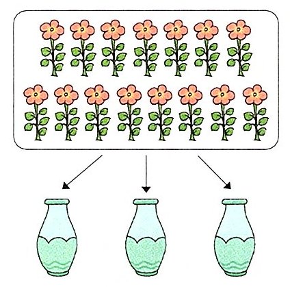 把( )朵花平均放到( )个花瓶里,每个花瓶里放( )朵。