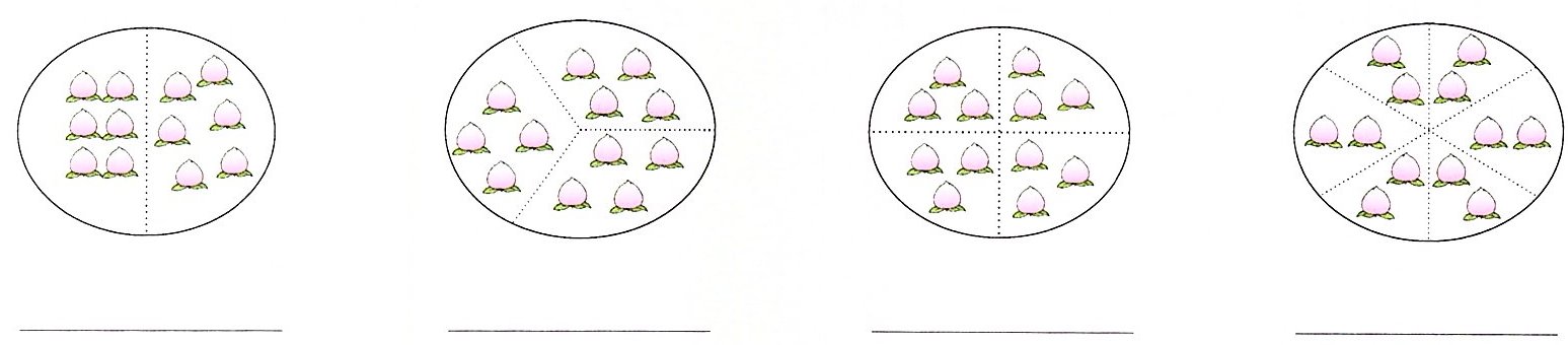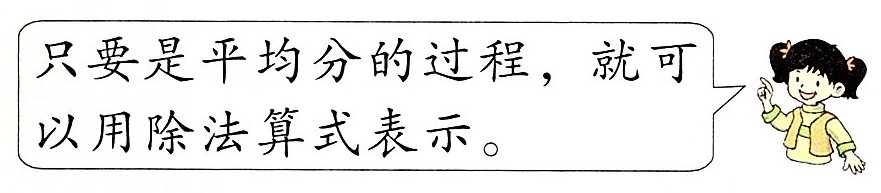 1. 先平均分一分,再写出除法算式,最后读一读。