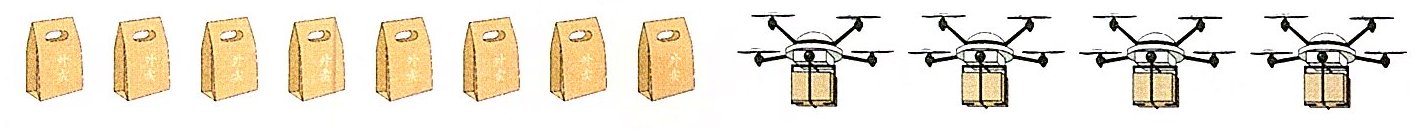 2. (新情境·科技生活)一共有 8 份外卖,4 台无人机一起派送,平均每台无人机要派送( )份外卖。