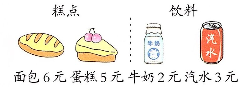 4. 星期天,王老师为夏令营的同学买糕点和饮料。