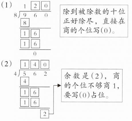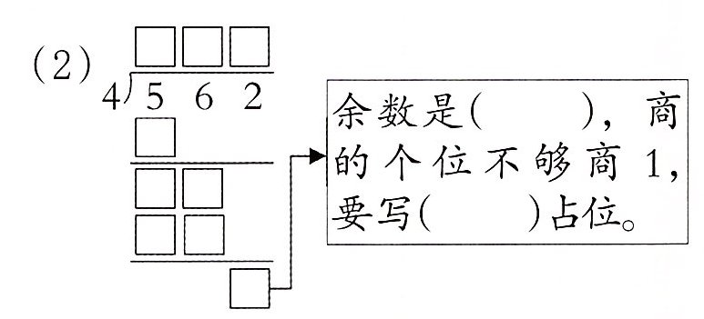 解析 要使商的末尾有0,被除数前两位必须可以被3整除,被除数个位上的数必须小于3。因此第二个□里可以填0、1、2。满足被除数前两位可以被3整除的有36、66、96,因此第一个□里可以填3、6、9。两个□里可以分别填3、0;3、1;3、2;6、0;6、1;6、2;9、0;9、1;9、2。