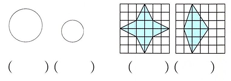 (4)比较下面每组中的两个图形的面积,在面积大的下面画“○”。