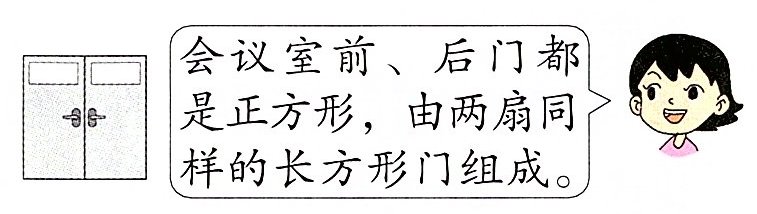 4. 已知每扇门的宽是 20 分米,求会议室前、后门的面积一共是多少平方米。